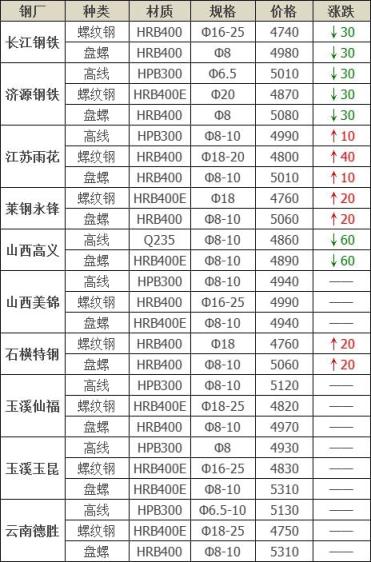 下調(diào)7家,占比46.7%,調(diào)價(jià)幅度10-40元/噸;