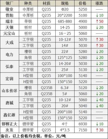 2月28日唐山燕鋼廢精密管價(jià)格格跌50元:優(yōu)質(zhì)3675重A3625重B3525中A3585中B3485優(yōu)質(zhì)鑄鐵3505大件剪切3605爐一3535爐二3515爐三3415爐四2035剪切一3490剪切二3290剪切三1890不含稅