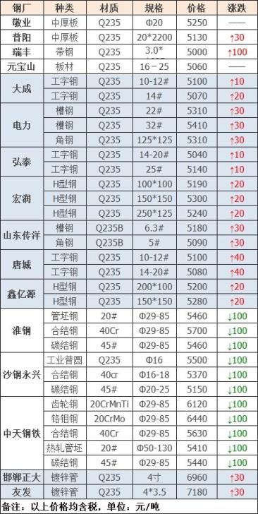 3月1日廣東河源德潤鋼鐵廢精密管價格格漲50元:鋼筋切粒3530;邊角料,新鋼板料3500;純鋼筋頭,直鋼筋3480;模具鋼、料頭圓鋼、軌道鋼、火車輪3480;硅鋼片停收;冷軋、熱軋、碎料沖子3430;優(yōu)重3480;鍛打料、馬蹄鐵3480;重廢3450;機(jī)械生鐵、高碳鋼、鑄鋼件、生熟混裝3450;厚剪3400,不含稅。